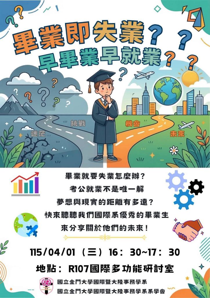 本系「中國大陸研究系列講座」將於2026年4月21日邀請台灣大學政治系 張登及教授及致理科大國貿系 […]